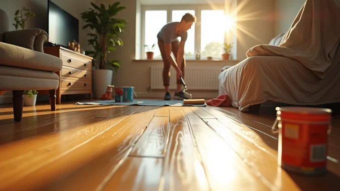 La préparation du support détermine 80% de la réussite finale. Un parquet mal préparé provoquera des écaillages prématurés et un rendu décevant. Commencez par vider entièrement la pièce et protégez les plinthes avec du ruban de masquage de qualité professionnelle.